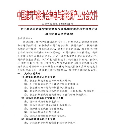 2023年3月25-28日,中国建筑节能协会热电与新能源产业分会将于陕西省延安市举办《第四届智慧供热与节能减排技术应用交流展示及项目观摩大会》!
